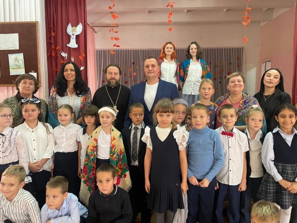 В МОУ СОШ N 34 Сталинградского благочиния для детей начальных классов прошел праздник Покров Пресвятой Богородицы.