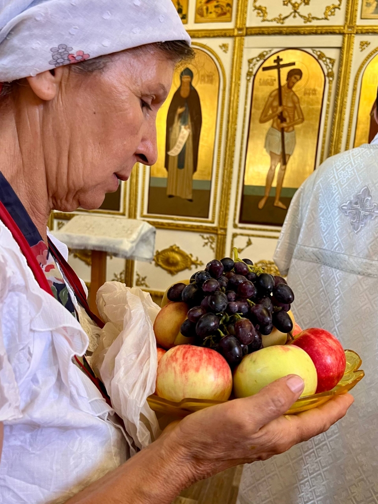 Самое трогательное началось после службы. Прихожане не спешили расходиться, обменивались освященными плодами, угощали друг друга.