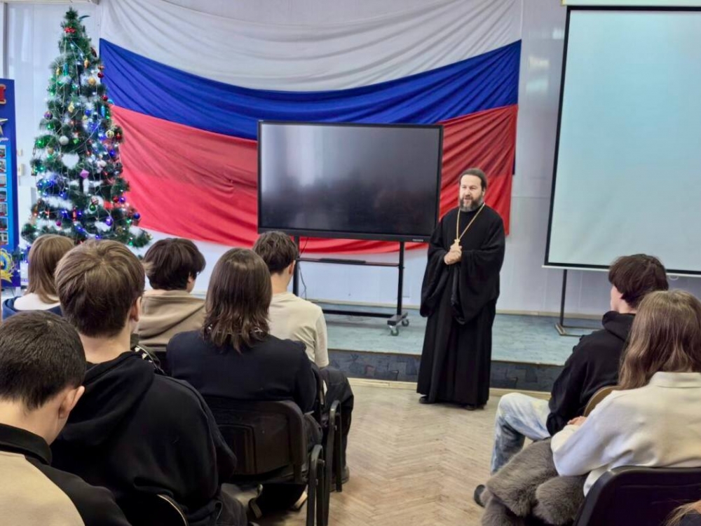 В предпраздничные дни состоялась встреча студентов первого курса Волгоградского колледжа управления и новых технологий им. Ю. Гагарина с благочинным Сталинградского округа, настоятелем храма святого праведного Иоанна Кронштадтского иереем Олегом Иващенко.