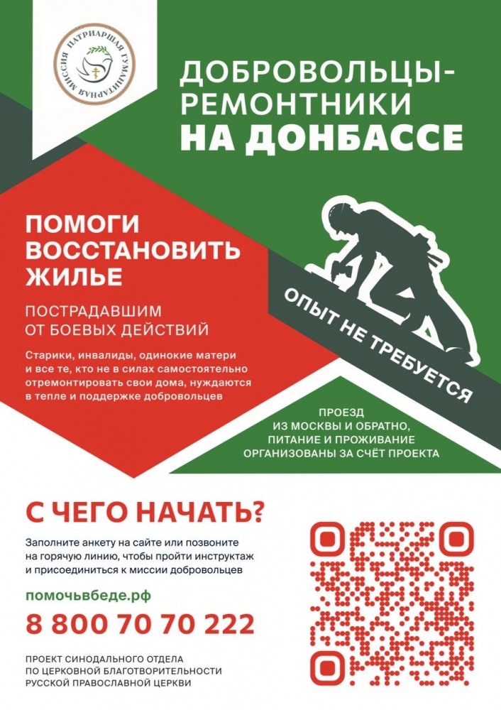 Патриаршая гуманитарная миссия Русской Православной Церкви на постоянной основе готовит ГРУППЫ ДОБРОВОЛЬЦЕВ для социальной работы в пострадавших районах: